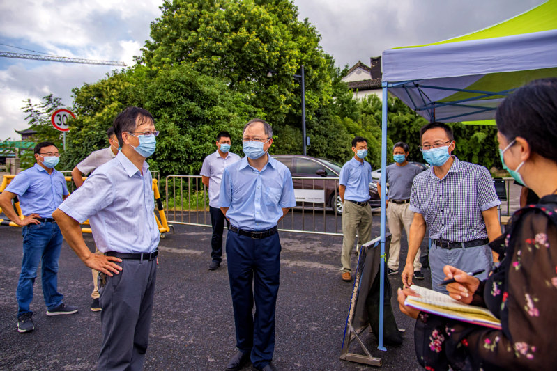 “工人们主要从哪里过来的?”“都接种疫苗了吗?”在天赐庄校区本部前化4、5号宿舍楼、阳澄湖校区新工科之智工舍维修改造工地,独墅湖校区体育馆、学生中心建设工地,校领导一行查看了工程建设情况,随机抽查了施工人员行程码、健康码和疫苗接种情况。姜建明副校长强调,暑期学校在建工程多,人员聚集,是校园防疫重点场所,必须严格外来人员管理,施工单位也要切实增强责任意识,密切关注员工行动轨迹和健康状况,强化现场防控及施工管理,全力保障施工人员自身安全和学校防控大局平稳。