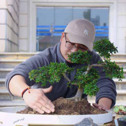 活动还安排了多肉DIY种植“微课堂”和盆栽制作观赏等互动环节。有着资深经验的东吴服务绿化中心工作人员现场演示了盆栽制作的全过程,让师生们感受盆栽艺术的魅力。随后,工作人员一边向大家讲解多肉植物的日常种植、养护、浇水等知识,一边示范如何正确种植多肉植物。大家手持小工具,填土、配色、种植……不一会儿功夫,一盆盆有模有样的多肉盆栽就完工了。