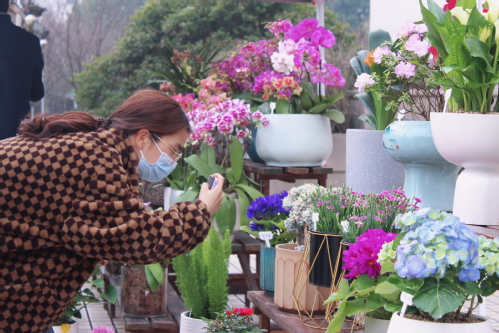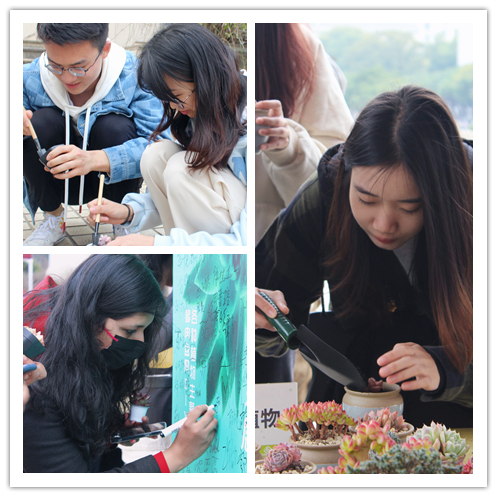 活动现场展示了多种类型的盆栽植物,有活泼可爱的多肉、姿态优美的兰花、造型独特的盆景,也有符合当下时节的各种花卉。迎着春风向着暖阳,绿植和花儿更加娇艳欲滴,扮靓了校园一隅。师生们满怀期待的相约而来,纷纷拿起手机拍照打卡,记录美好瞬间。