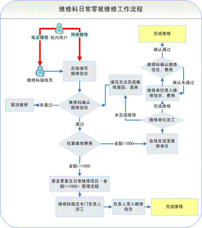 零维修报修办理指南:办事房间号东校区后勤2号楼110室