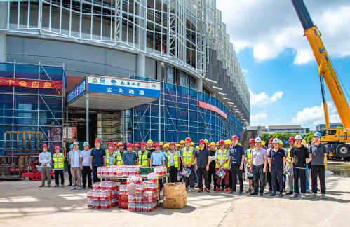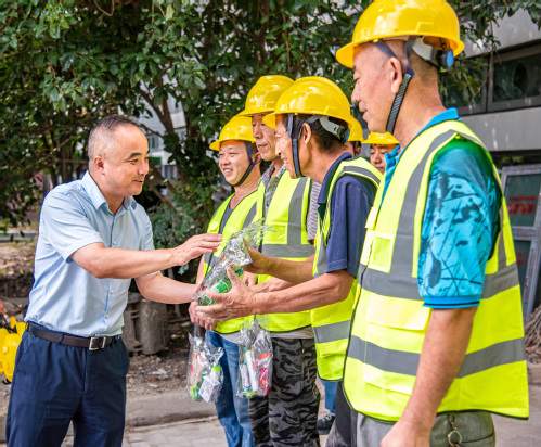 查佐明一行先后来到独墅湖校区公教楼、独墅湖校区五食堂、独墅湖校区体育馆与学生活动中心、东区7号8号宿舍、本部逸夫楼等施工现场,为施工人员送上毛巾、花露水等消暑用品,对一线人员兢兢业业的工作态度和为学校建设发展做出积极贡献的精神给予肯定,感谢大家不畏辛苦坚守岗位,并叮嘱大家注意安全,做好防暑降温工作、劳逸结合,保重身体。