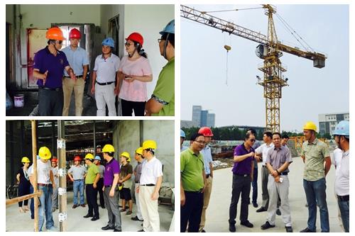 检查组现场查看了已接近尾声的学生宿舍、教学楼等维修改造项目,以及院士实验楼、恩玲中心小圆建设等基建项目。在各施工现场看望和慰问了坚守在岗位一线的干部职工和施工人员,详细了解了工程项目实施进展情况,并对新学期开学必须完成的项目就时间节点和项目要求进行了现场安排。文思楼是教学楼,必须保证9月7日的正常上课,现场明确了安装钢窗、窗帘,拆脚手架,以及多媒体测试和打扫等具体时间节点等要求;宿舍楼必须在学生入住前完成清扫等项目扫尾工作;对于院士实验楼、恩玲中心和唐仲英医学研究院大楼等基建项目,要求在确保安全的前提下保质保量按期完成项目建设工作。
