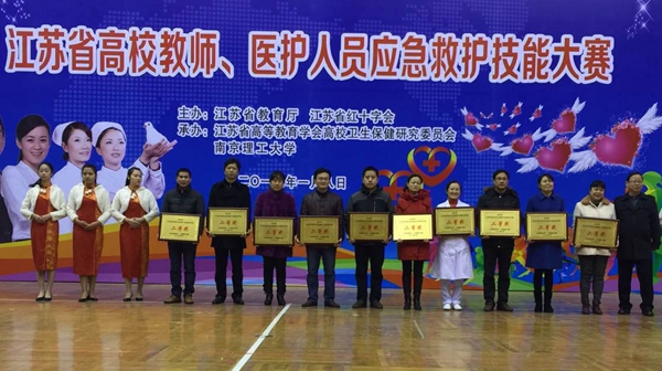 1月7日至9日,由江苏省教育厅、江苏省红十字会主办,江苏省高等教育学会高校卫生保健研究会承办的全省高校应急救护决赛在南京理工大学拉开帷幕。此次比赛分教师队和医护队分别进行,经过之前苏南、苏北和南京协作区的初赛选拔,最终全省教师队和医护队各16支队伍进入决赛,由我校校医院组建的医护队在最终决赛中荣获了二等奖。