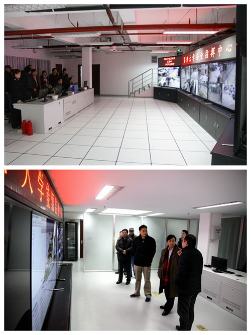 随后,校领导一行到保卫处查看了我校的安全指挥中心和能源监测中心。在听取相关情况介绍后,熊思东强调要高度重视校园安全工作,认真落实假期值班制度,通过指挥中心和能源监测中心两大平台防患于未然,在确保校园安全的同时建设好节能型绿色校园。