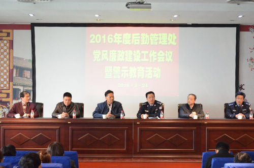 为贯彻落实苏州大学党风廉政建设工作会议精神,打造一支政治坚定、纪律严明、清正廉洁的后勤管理队伍,3月24日,苏州大学后勤党委组织全体党员、干部职工走进江苏省苏州监狱,召开了2016年后勤管理处党风廉政建设工作会议,开展了警示教育活动。这也是后勤党委今年开展的“把党规党纪刻在每位党员心上,努力营造风清气正后勤工作环境”主题活动的组成部分。苏州大学副校长杨一心、苏州大学监察处副处长徐昳荃应邀出席,会议由李翔处长主持。