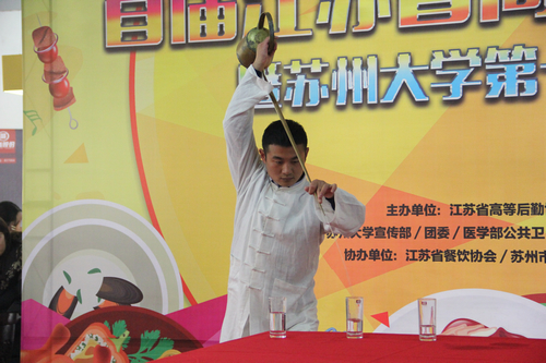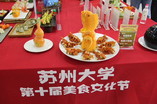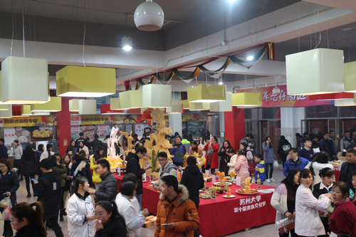 12月23日,首届江苏省高校美食文化节暨苏州大学第十届校园美食节在天赐庄校区莘园餐厅举办。苏州多家知名餐饮企业名厨大师走进大学校园,现场展示苏帮菜制作,传承苏式饮食文化。