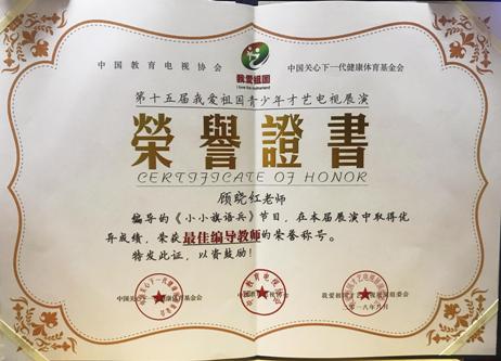 苏州大学幼儿园的舞蹈《小小旗语兵》在第十五届“我爱祖国全国青少年才艺电视展演”活动中喜获舞蹈组金奖,顾晓红老师获最佳编导教师奖。