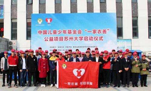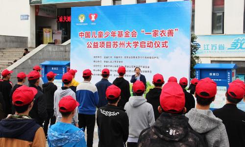 11月14日在阳澄湖校区举办了中国儿童少年基金会“一家衣善”公益项目苏州大学启动仪式,后勤管理处、学生宿舍管理办公室、机电工程学院、轨道交通学院、沙钢钢铁学院等部门负责人和近百名师生参加。