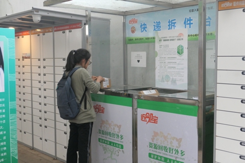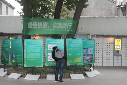 黄俊书记充分肯定了苏州大学校园快递的建设和发展,并介绍了目前推进快递进校园、绿色邮政发展的政策和工作进展。随后,检查组来到天赐庄校区本部和北区的快递点实地检查,调研活动开展情况及校园服务点运作情况,并向学生询问取件是否便捷及对快递服务的意见建议,在现场,不少学生使用快递拆件台拆包裹,并将快件包装投入回收桶。