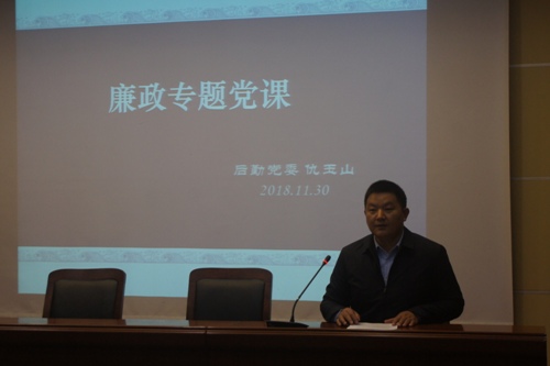 为进一步推进后勤党风廉政建设工作,11月30日上午,后勤管理处在天赐庄校区本部天元大讲堂举办了“提高廉政意识,强化责任纪律”为主题的廉政教育专题党课。后勤管理处班子成员、全体干部职工参加党课学习。