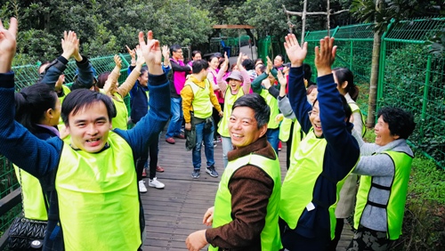 接着是树山徒步定向闯关活动。大家在培训师的带领下徒步欣赏树山美丽风景的同时,根据任务书要求分工合作完成任务书上的穿越A4、拼七巧板、解手链、与陌生人合影唱歌等闯关小任务。活动为平时在工作中没有交集的同事创造了交流合作的机会,过程中还可以发现自己和同伴身上的优点,相互间增进了感情,提高了团队的凝聚力。