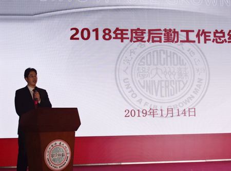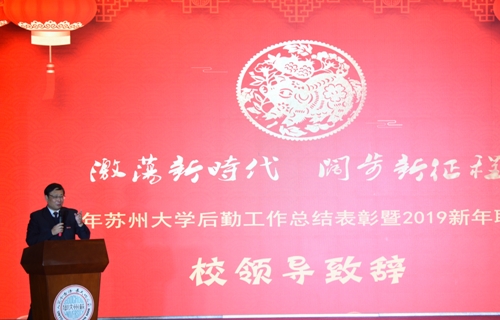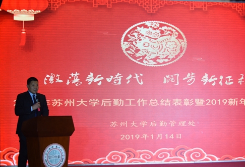 1月14日下午,“激荡新时代 阔步新征程”2018年苏州大学后勤工作总结表彰暨2019新年联欢会在本部敬贤堂举办。校党委常委、总会计师周高,处全体干部职工、后勤服务企业负责人和服务人员代表参加活动。后勤党委书记仇玉山主持工作总结表彰会。