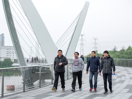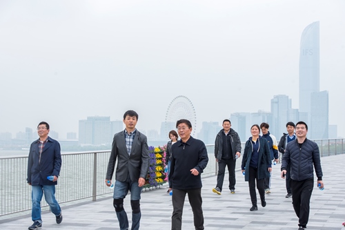 下午1:30,后勤管理处70多名职工在苏州中心3号地铁口集合留影后,沿着金鸡湖健身步道向北快乐出发。途径玲珑桥、文化艺术中心、月光码头、摩天轮、金姬墩、金水湾栈桥、望湖角、李公堤、风之园、湖滨大道,最后回到起点,全程共15.5公里。