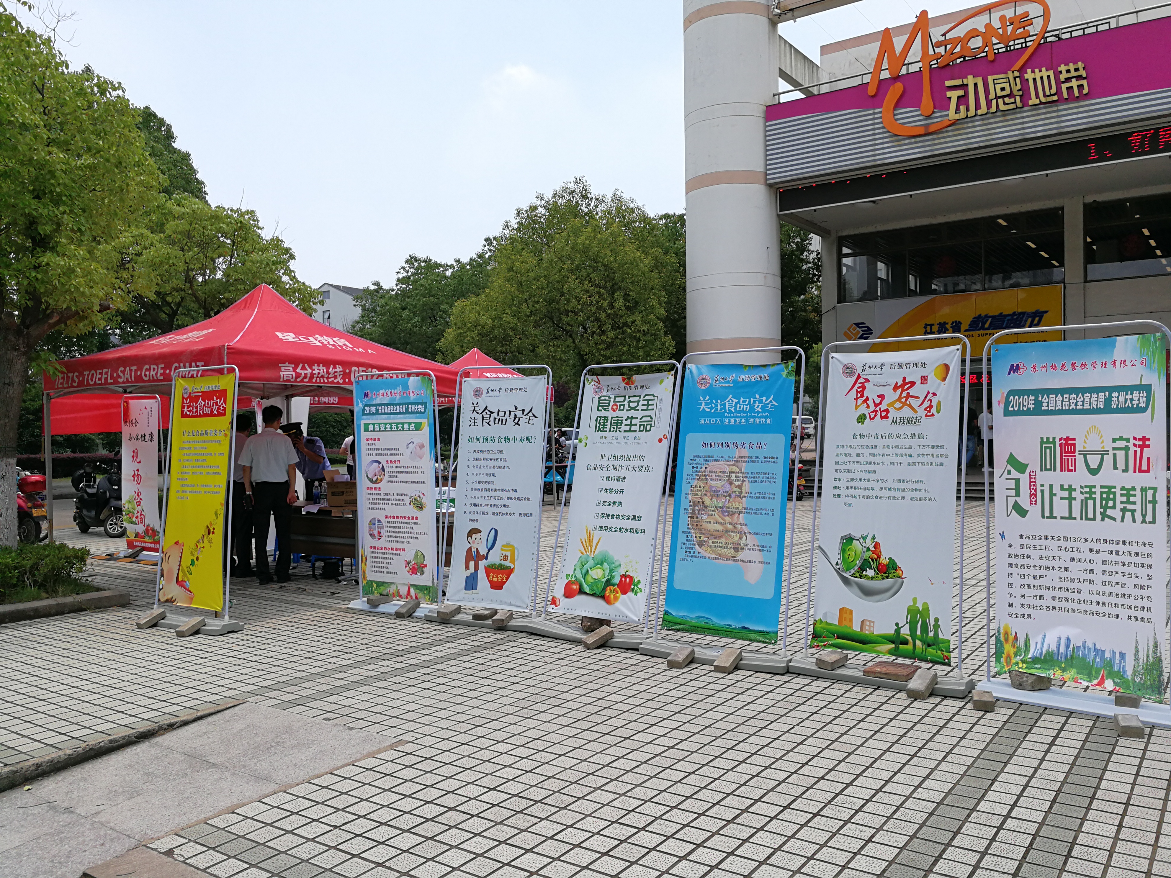 东区教育超市广场活动现场,开展了设置食品安全知识展板,电视宣传片播放和问卷有奖调查等食品安全主题宣传活动,突出食品安全的重要性。活动还邀请了苏州市姑苏区市场监督管理局专家到现场共同开展食品安全宣传活动,向过往同学们宣传食品安全科普知识,包括检测餐具洁净度、蔬菜农药残留等方面的知识。