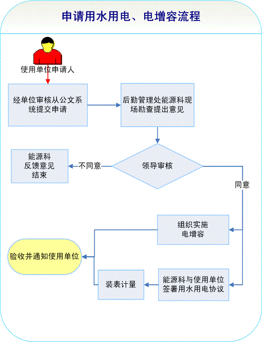 申请用水用电、电增容办理指南:办事房间号天赐庄校区后勤2号楼203室