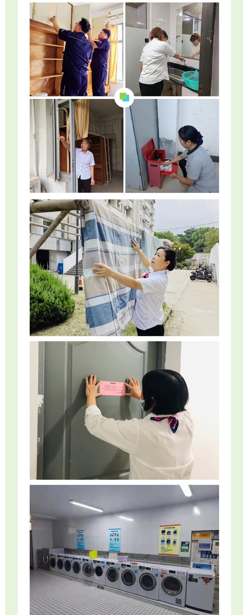 住宿保障。推开宿舍楼的大门,目之所及,温馨有爱,整洁舒适。为确保新学期学生平稳入住,克服住宿资源紧缺困难,制定了新老生住宿安排方案;提前对宿舍楼公共区域和新生房间进行了修补、粉刷并做好细致保洁消杀,为新老生房间开窗通风;全面检修门窗、家具、照明、水龙头等设施,清洗空调滤网,更换检测直饮水滤芯,升级宿舍洗衣设施……宿舍风貌焕然一新。