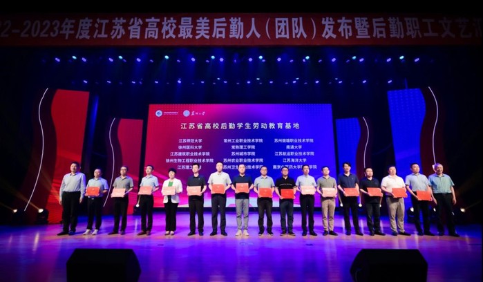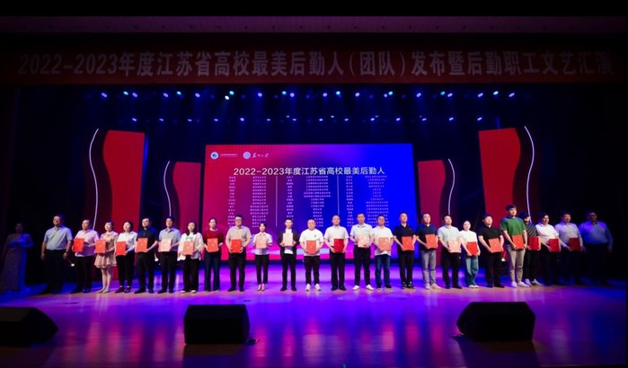 融合聚力促发展,匠心筑梦谱新章。6月2日,由省高等学校后勤协会主办,我校承办的“2022-2023年度江苏省高校最美后勤人(团队)发布暨后勤职工文艺汇演”在天赐庄校区存菊堂举行。